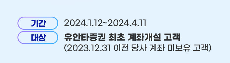 - 대상 : 유안타증권 최초 계좌개설 고객 (2023.12.31 이전 당사 계좌 미보유 고객