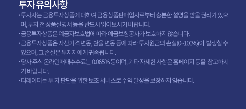 - 금융투자상품은 예금자보호법에 따라 예금보험공사가 보호하지 않습니다.