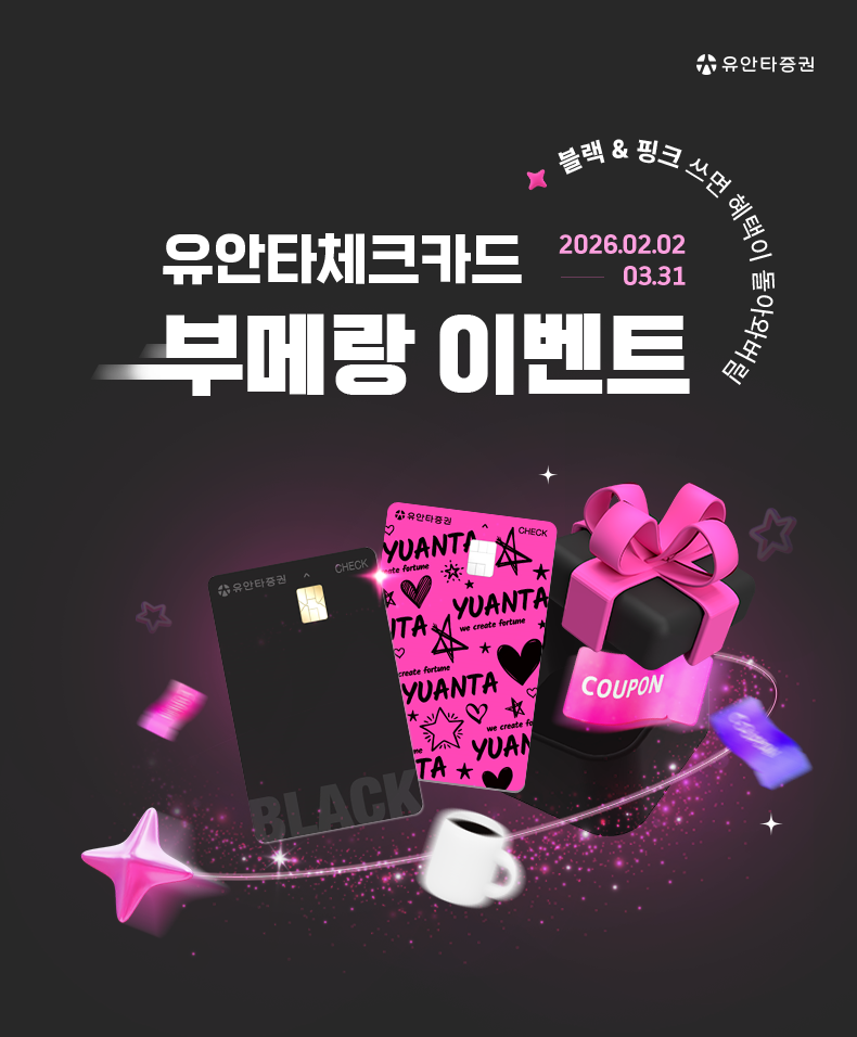 하나. 이벤트 기간 내 유안타체크카드 블랙 or 핑크 발급 후 1천원 이상 결제시, 메가MGC커피(HOT아케리카노) 쿠폰 1매 제공